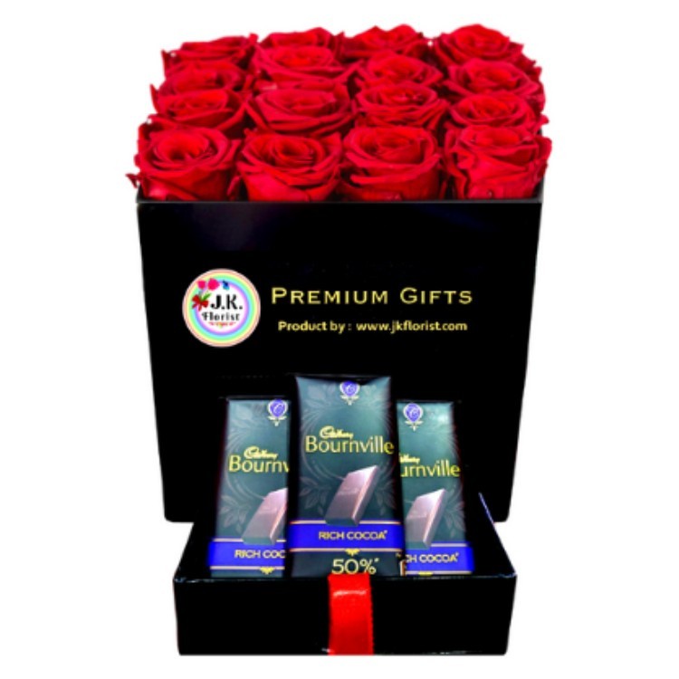 A Premium Gift Box of Red Roses & Cadbury Bournville Chocolates