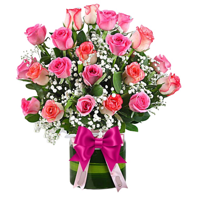 A Classy Bowl Vase Premium Arrangement of 21 Mix Color Roses