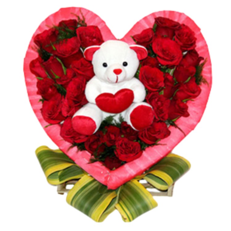 # 01 – A Cute Arrangement of 21 Red Roses & Teddy in Heart Shape
