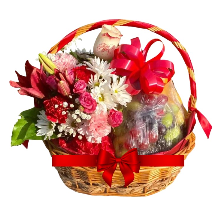 A Fresh Fruits Combo – A Fresh Fruits Basket + Mix Seasonal Flowers