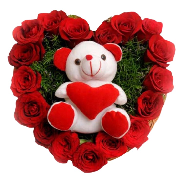 # 01 – A Cute Arrangement of 21 Red Roses & Teddy in Heart Shape