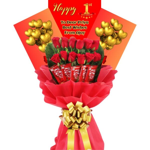 # 001 – An Anniversary Special – Unique Personalized Printed Message Bouquet of Roses & Chocolates