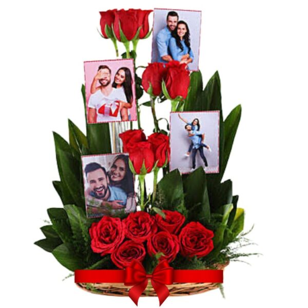 # 01 – A Beautiful Personalized Combo – 15 Red Roses Basket with 4 Photos