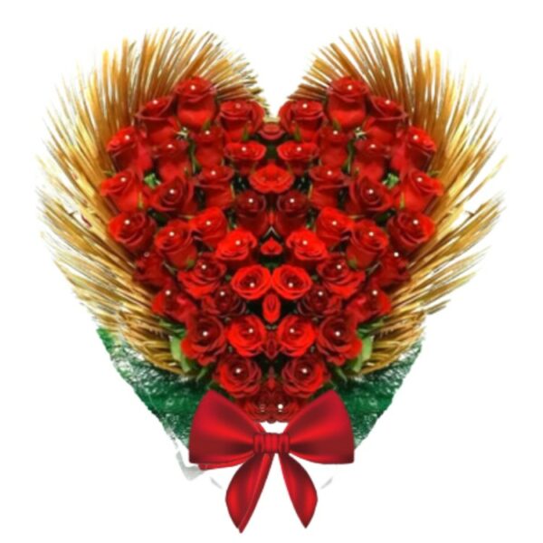 A Beautiful Heart Shape Arrangement of 70 Red Roses