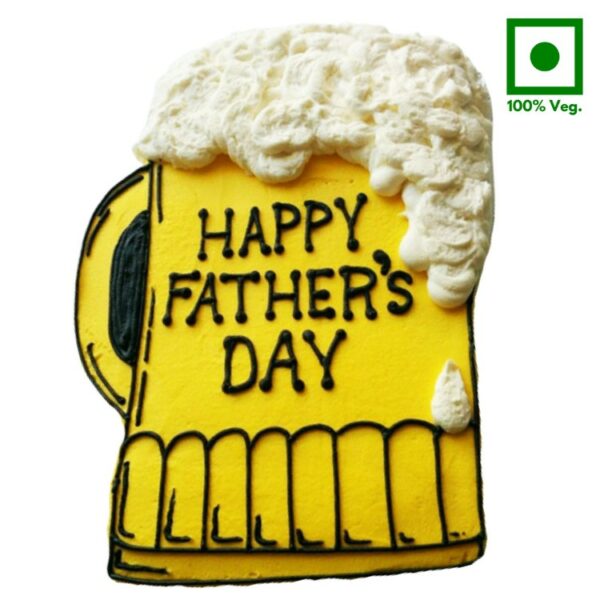 A Father’s Day Special Premium Pineapple Cream Cake of Beer Mug Design – with 100% Pure Veg. Freshly Baked Quality Assurance.