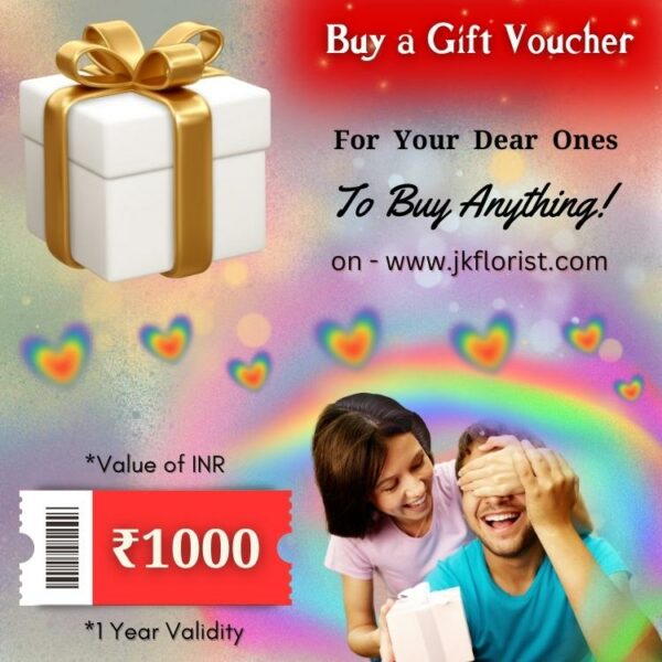 Meaning of a Gift Voucher: A Special Gift Voucher of a Specific Value that can be Purchased Online at – zksgifts.com, to give it as a Gift to Your Dear Ones. And they can use it within a Year (within 365 Days from the date of purchase) to Buy ‘Anything’ from the JK Florist Website.