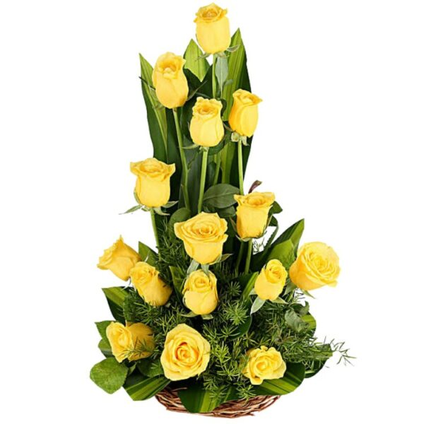 A Standing Basket of 15 Yellow Roses